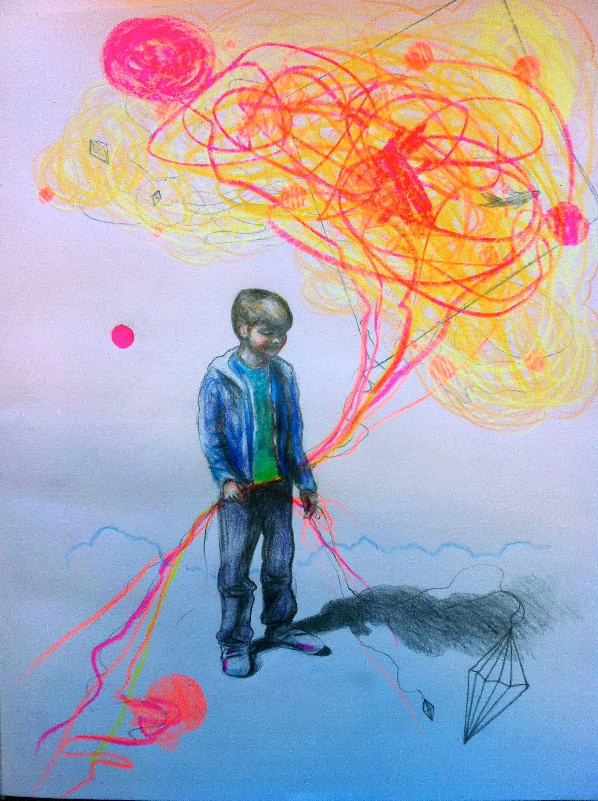 "Kite" Free-hand drawing, marker and crayons 29x36 cm All rights reserved © Gro Mukta Holter